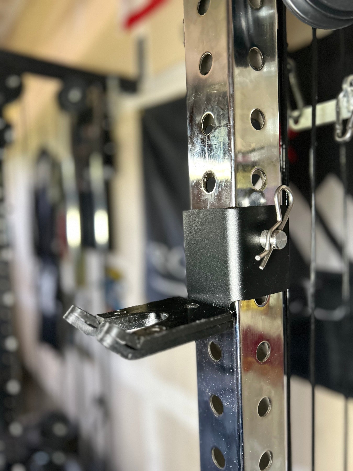 Engineered to fit 60mm x 60mm upright tubing with 5/8" holes or 3"x3" with 5/8" or 1" holes (1" pin included), this device was originally developed for Bells of Steel cable machines but is compatible with other 60mm systems. Whether you're doing overhead tricep extensions, calf raises, or deadlifts, this smart little tool lets you pre-position your attachment at just the right height—no bending, no fiddling.