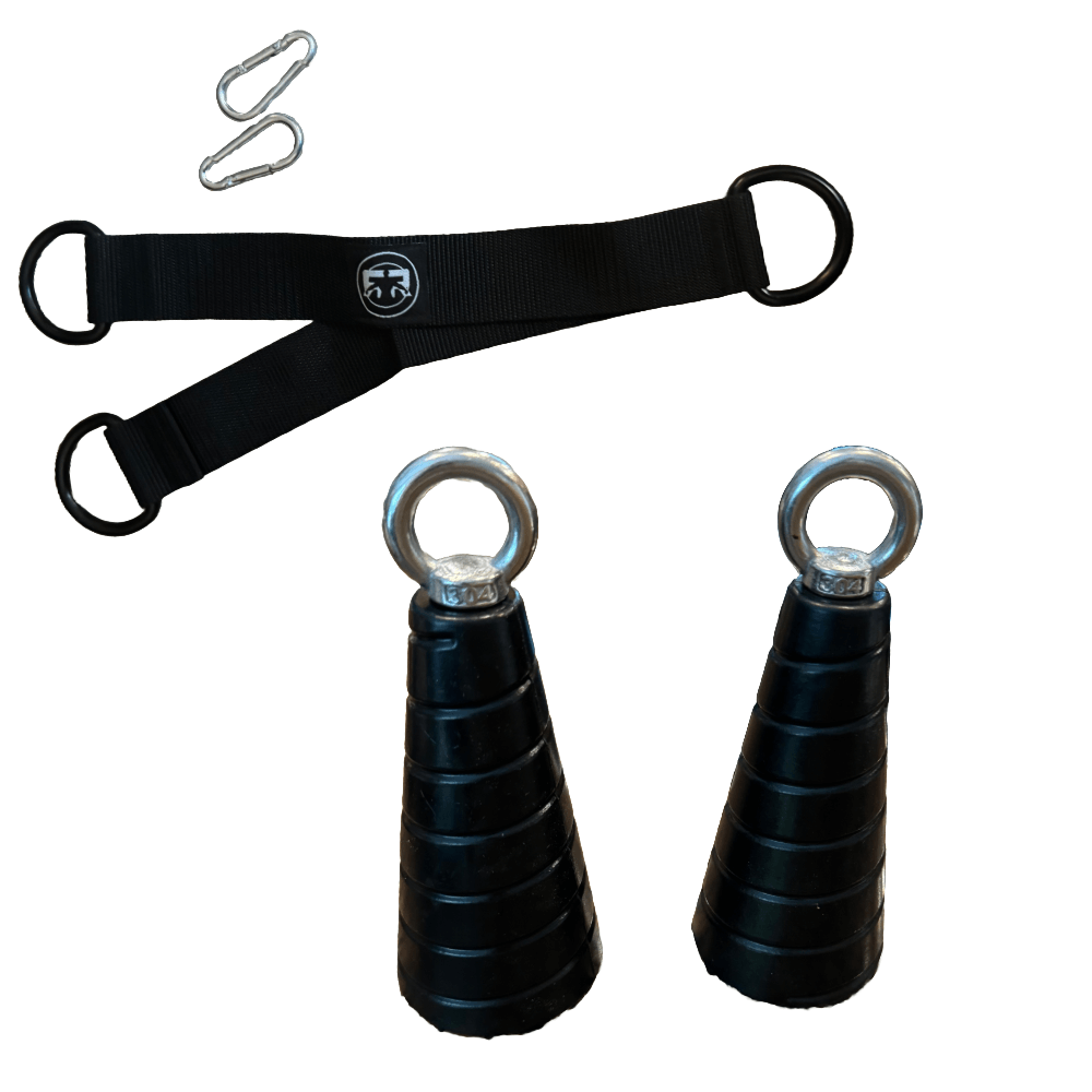Tri-Cones are the absolute perfect grip solution for tricep extensions and other upper body exercises with cables, resistance bands, or even Ripped Straps suspension trainers.  They’re made with rubber and a stainless steel hook ring, and have versatility for days since they’re not bound to a single rope.  You can do unilateral or bilateral movements with them.  Some of my favorites other than tricep extensions include straight-arm pull downs, reverse fly’s, and lateral raises.