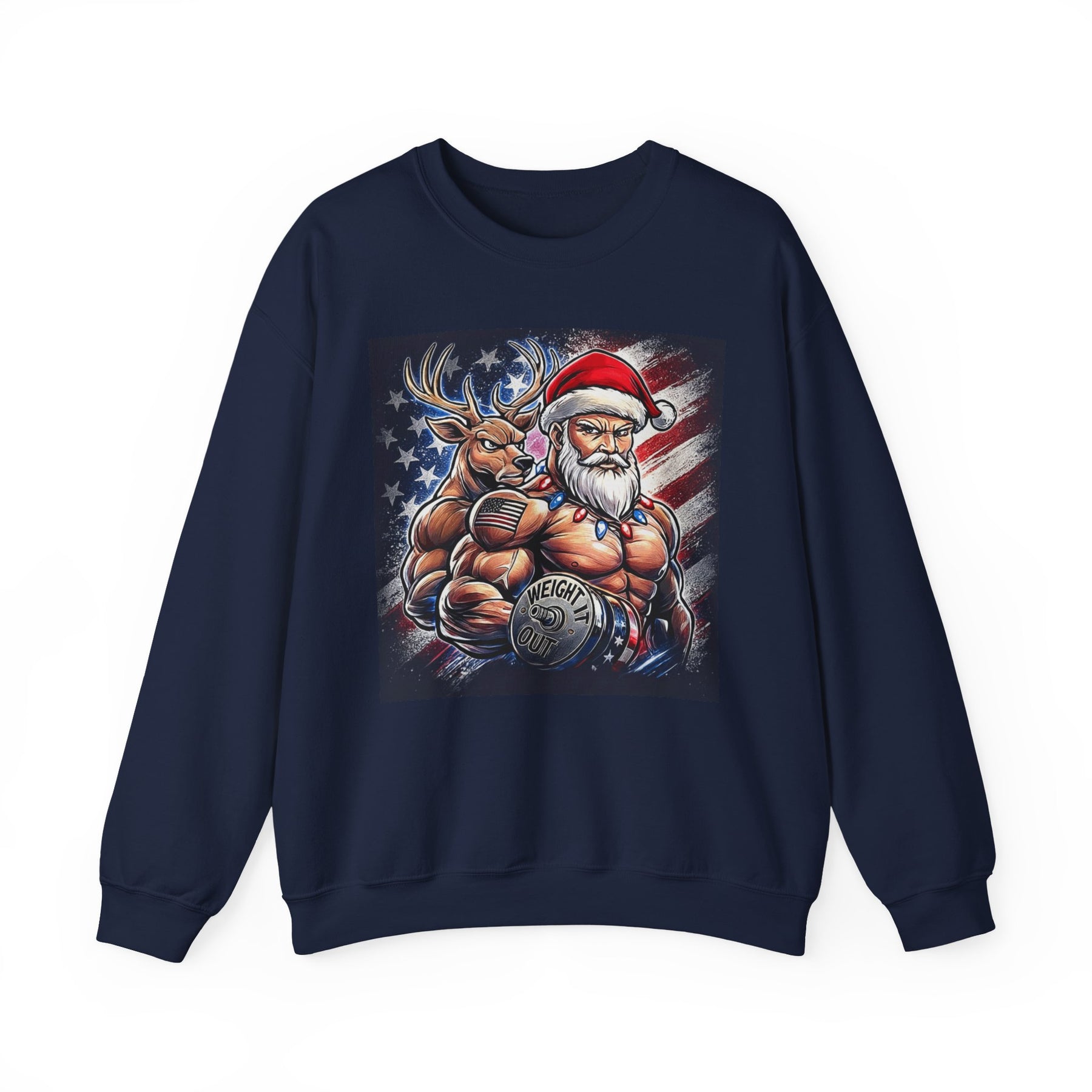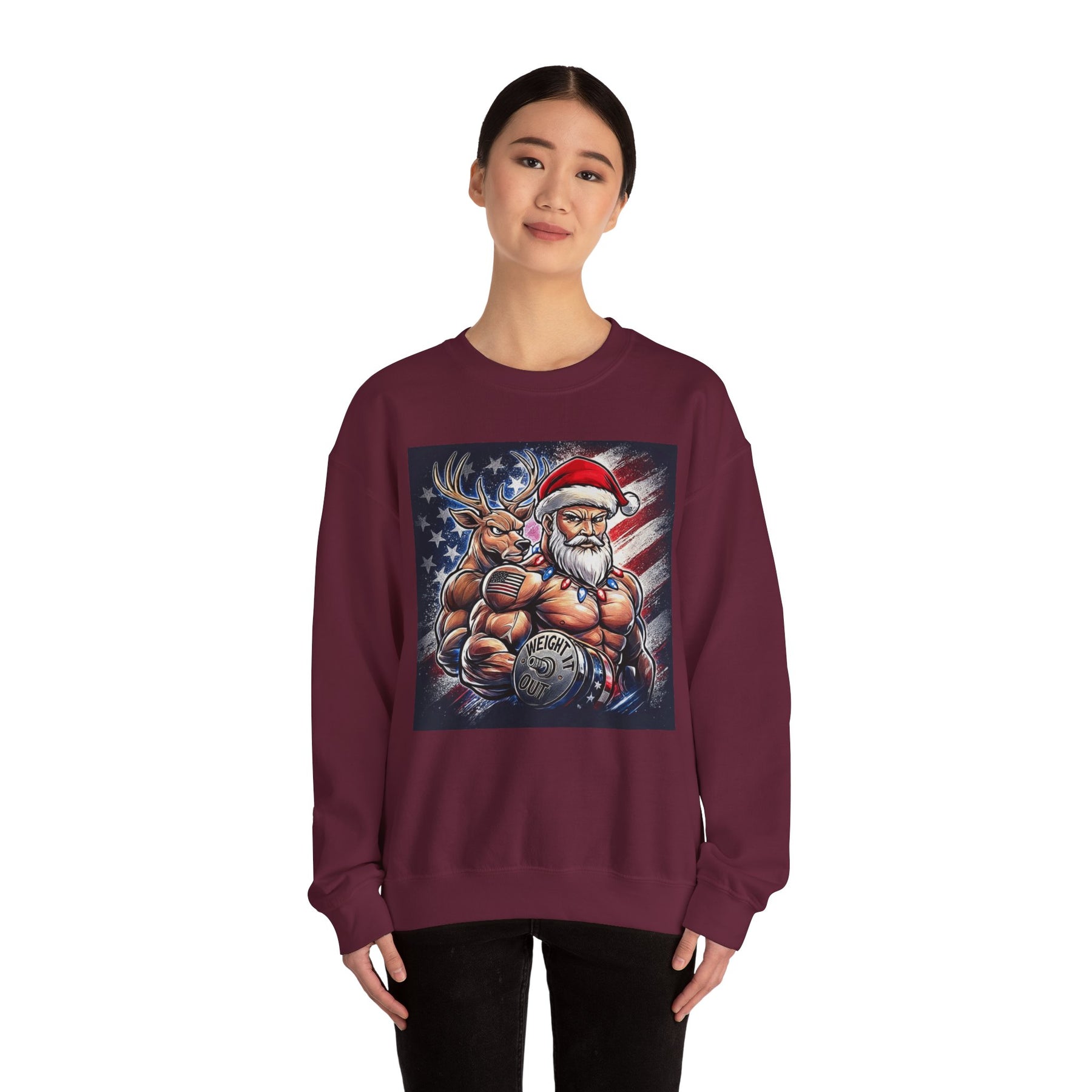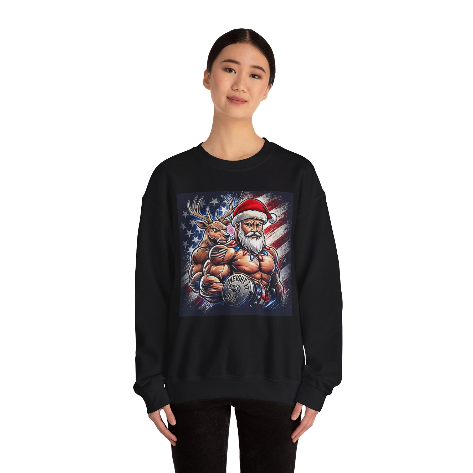 Weight It Out Christmas Santa & Reindeer Crewneck Holiday Limited Edition Sweatshirt