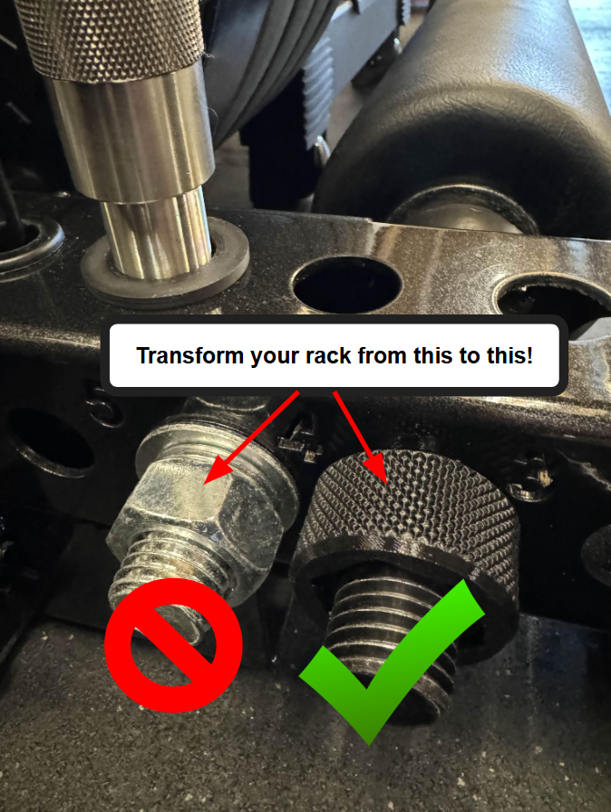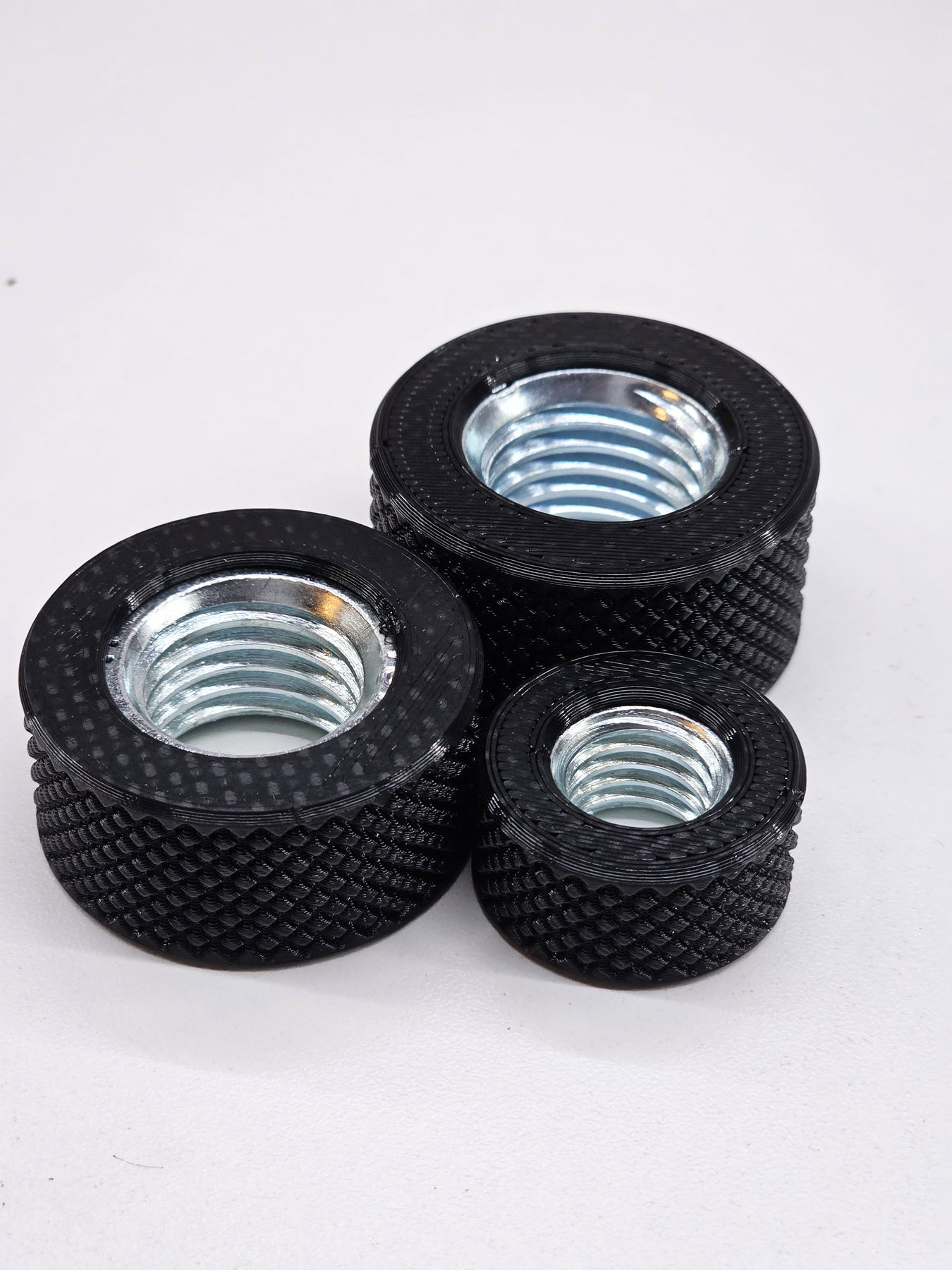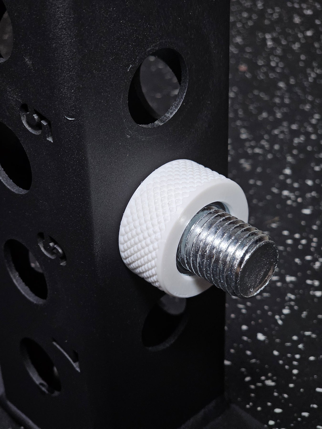 Nut Armor is a knurled cover designed to fit your standard hex nuts and further customize YOUR gym. Each piece is designed to have a tight fit over the standard hex nut.