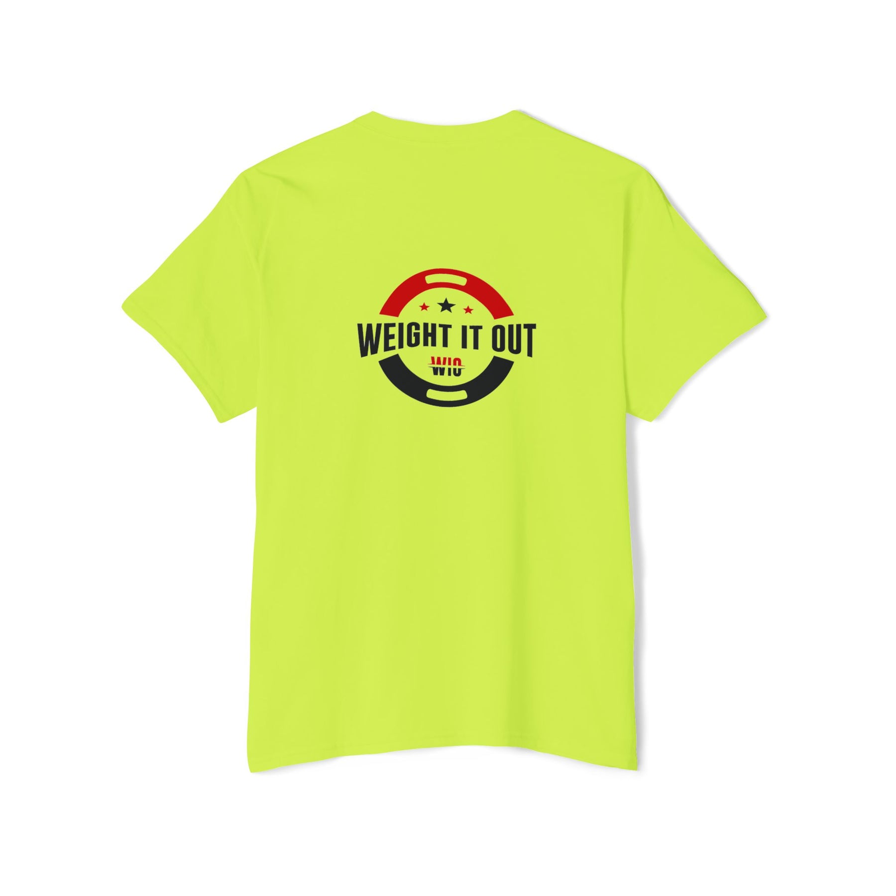 Weight It Out Pocket Tee — Fitness Gym T‑Shirt with 'Weight It Out' Barbell Logo on Back